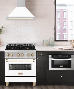 ZLINE Autograph Edition Convertible Fingerprint Resistant DuraSnow Stainless Steel Range Hood with White Matte Shell and Champagne Bronze Handle (KB4SNZ-WM-CB)
