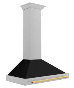 ZLINE Autograph Edition Convertible Fingerprint Resistant DuraSnow Stainless Steel Range Hood with Black Matte Shell and Polished Gold Handle (KB4SNZ-BLM-G)