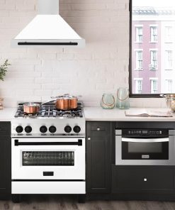 ZLINE Autograph Edition Convertible Stainless Steel Range Hood with White Matte Shell and Matte Black Accents (KB4STZ-WM-MB)