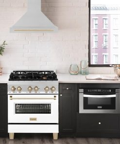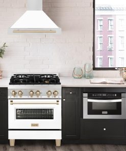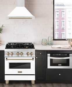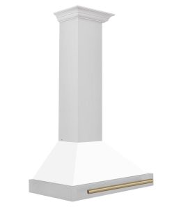 ZLINE Autograph Edition Convertible Stainless Steel Range Hood with White Matte Shell and Polished Gold Accents (KB4STZ-WM-G)