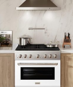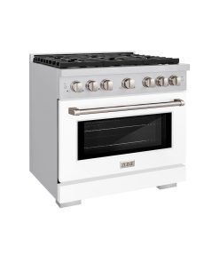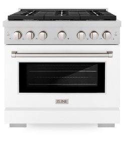 ZLINE 36 in. 5.2 cu. ft. Paramount Gas Range with 6 Burner Cooktop and Convection Gas Oven in Stainless Steel with White Matte Door (SGR-WM-36)