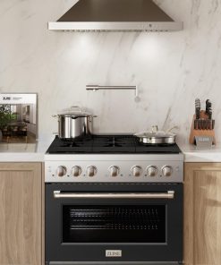 ZLINE 36 in. 5.2 cu. ft. Paramount Gas Range with 6 Burner Cooktop and Convection Gas Oven in Stainless Steel with Black Matte Door (SGR-BLM-36)