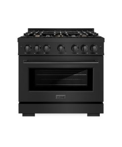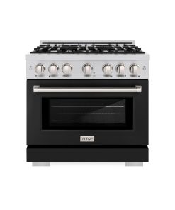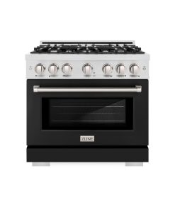 ZLINE 36 in. 5.2 cu. ft. Select Gas Range with 6 Burner Cooktop and Convection Gas Oven in Stainless Steel with Black Matte Door (HGR-BLM-36)
