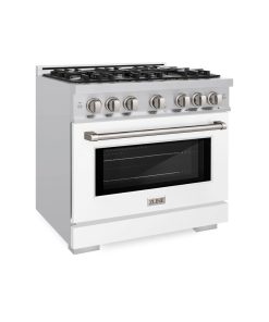 ZLINE 36 in. 5.2 cu. ft. Select Gas Range with 6 Burner Cooktop and Convection Gas Oven in Stainless Steel with White Matte Door (HGR-WM-36)