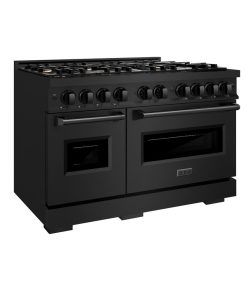 ZLINE 48 in. 6.7 cu. ft. Classic Double Oven Dual Fuel Range with 8 Burner Gas Cooktop in Black Stainless Steel (CDRB-48)