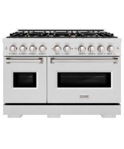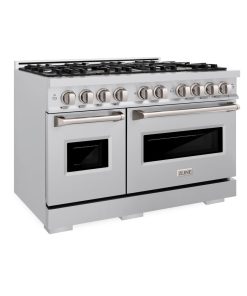 ZLINE 48 in. 6.7 cu. ft. Classic Double Oven Dual Fuel Range with 8 Burner Gas Cooktop in DuraSnow Stainless Steel (CDRS-48)