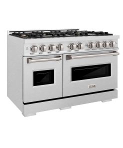 ZLINE 48 in. 6.7 cu. ft. Classic Double Oven Dual Fuel Range with 8 Burner Gas Cooktop in DuraSnow Stainless Steel with White Matte Doors (CDRS-WM-48)