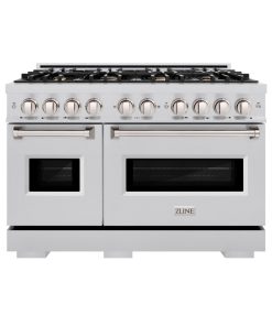 ZLINE 48 in. 6.7 cu. ft. Classic Double Oven Gas Range in DuraSnow Stainless Steel with 8 Brass Burners (CGRS-BR-48)