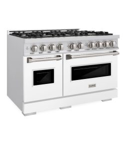 ZLINE 48 in. 6.7 cu. ft. Classic Double Oven Dual Fuel Range with 8 Burner Gas Cooktop in Stainless Steel with White Matte Doors (CDR-WM-48)