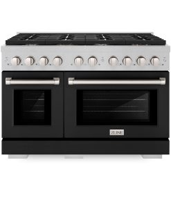 ZLINE 48 in. 6.7 cu. ft. Paramount Double Oven Gas Range with 8 Burner Cooktop in Black Stainless Steel (SGRB-48)