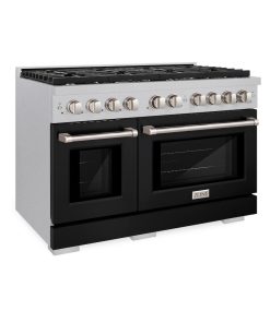 ZLINE 48 in. 6.7 cu. ft. Paramount Double Oven Gas Range with 8 Burner Cooktop in DuraSnow Stainless Steel with Black Matte Doors (SGRS-BLM-48)