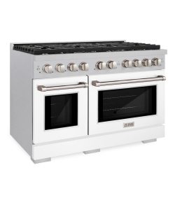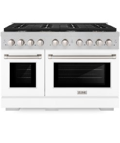 ZLINE 48 in. 6.7 cu. ft. Paramount Double Oven Gas Range with 8 Burner Cooktop in DuraSnow Stainless Steel with White Matte Doors (SGRS-WM-48)