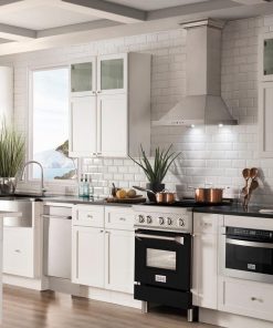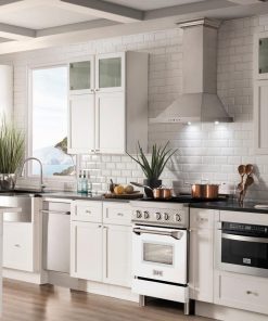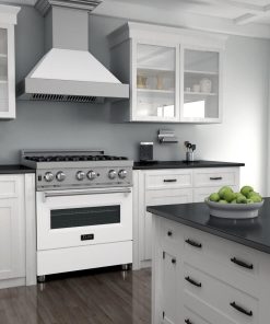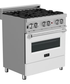 ZLINE 30 in. 4.0 cu. ft. Legacy Dual Fuel Range with 4 Burner Gas Cooktop and Electric Convection Oven in DuraSnow Stainless Steel and White Matte Door (RAS-WM-30)