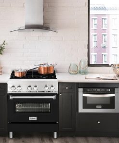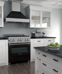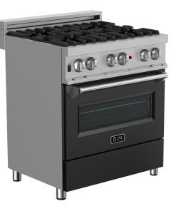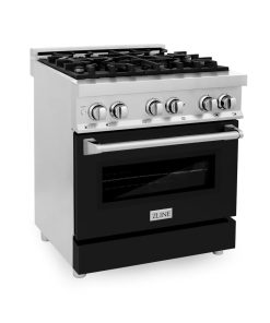 ZLINE 30 in. 4.0 cu. ft. Legacy Dual Fuel Range with 4 Burner Gas Cooktop and Electric Convection Oven in Stainless Steel and Black Matte Door (RA-BLM-30)