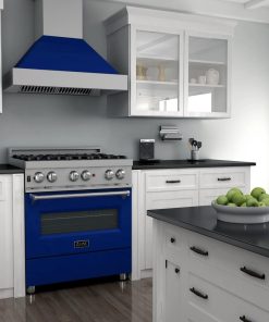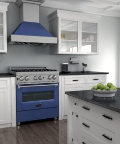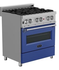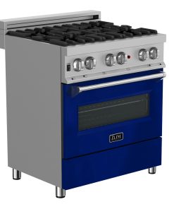 ZLINE 30 in. 4.0 cu. ft. Legacy Dual Fuel Range with 4 Burner Gas Cooktop and Electric Convection Oven in DuraSnow Stainless Steel and Blue Gloss Door (RAS-BG-30)