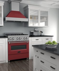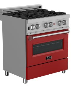 ZLINE 30 in. 4.0 cu. ft. Legacy Dual Fuel Range with 4 Burner Gas Cooktop and Electric Convection Oven in DuraSnow Stainless Steel and Red Matte Door (RAS-RM-30)