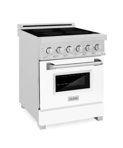 ZLINE 24 in. 2.8 cu. ft. Legacy Induction Range with 4 Element Cooktop and Electric Oven in DuraSnow Stainless Steel and White Matte Door (RAINDS-WM-24)