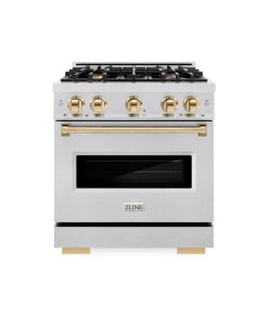 ZLINE Autograph Edition 30 in. 4.2 cu. ft. Classic Gas Range with 4 Burner Cooktop and Convection Gas Oven in DuraSnow Stainless Steel and Polished Gold Accents (CGRSZ-30-G)