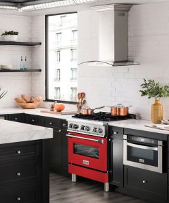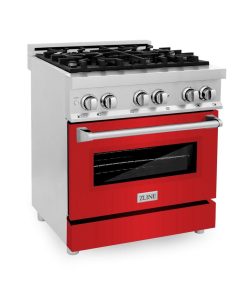 ZLINE 30 in. 4.0 cu. ft. Legacy Dual Fuel Range with 4 Burner Gas Cooktop and Electric Convection Oven in Stainless Steel and Red Matte Door (RA-RM-30)