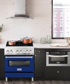 ZLINE 30 in. 4.0 cu. ft. Legacy Dual Fuel Range with 4 Burner Gas Cooktop and Electric Convection Oven in Stainless Steel and Blue Gloss Door (RA-BG-30)