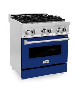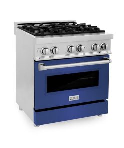 ZLINE 30 in. 4.0 cu. ft. Legacy Dual Fuel Range with 4 Burner Gas Cooktop and Electric Convection Oven in Stainless Steel and Blue Matte Door (RA-BM-30)
