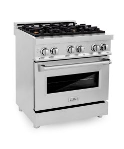 ZLINE 30 in. 4.0 cu. ft. Legacy Dual Fuel Range with 4 Burner Gas Cooktop and Electric Convection Oven in Stainless Steel with DuraSnow Door (RA-SN-30)