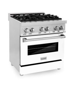 ZLINE 30 in. 4.0 cu. ft. Legacy Dual Fuel Range with 4 Burner Gas Cooktop and Electric Convection Oven in Stainless Steel and White Matte Door (RA-WM-30)