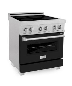 ZLINE 30 in. 4.0 cu. ft. Legacy Induction Range with 4 Element Cooktop and Electric Oven in DuraSnow Stainless Steel and Black Matte Door (RAINDS-BLM-30)