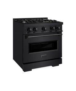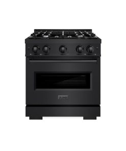 ZLINE 30 in. 4.2 cu. ft. Classic Dual Fuel Range with 4 Burner Gas Cooktop and Electric Convection Oven in Stainless Steel with Black Matte Door (CDR-BLM-30)