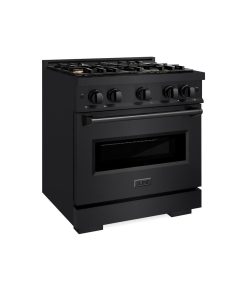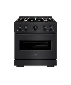 ZLINE 30 in. 4.2 cu. ft. Classic Dual Fuel Range with Gas Cooktop and Electric Convection Oven in Black Stainless Steel with 4 Brass Burners (CDRB-BR-30)