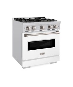ZLINE 30 in. 4.2 cu. ft. Classic Dual Fuel Range with 4 Burner Gas Cooktop and Electric Convection Oven in Stainless Steel with White Matte Door (CDR-WM-30)