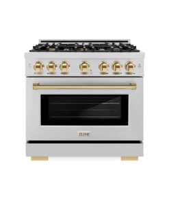 ZLINE Autograph Edition 36 in. 5.2 cu. ft. Select Gas Range with 6 Burner Cooktop and Convection Gas Oven in Stainless Steel and Polished Gold Accents (HGRZ-36-G)