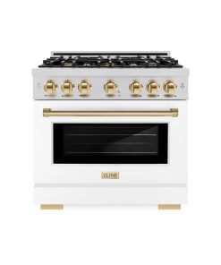 ZLINE Autograph Edition 36 in. 5.2 cu. ft. Select Gas Range with 6 Burner Cooktop and Convection Gas Oven in Stainless Steel with White Matte Door and Polished Gold Accents (HGRZ-WM-36-G)
