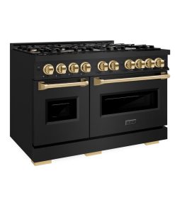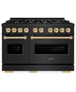 ZLINE Autograph Edition 48 in. 6.7 cu. ft. Classic Double Oven Dual Fuel Range with 8 Burner Gas Cooktop in Black Stainless Steel and Polished Gold Accents (CDRBZ-48-G)