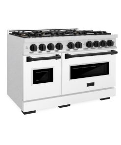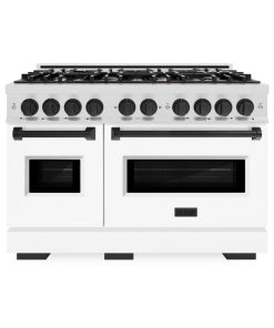 ZLINE Autograph Edition 48 in. 6.7 cu. ft. Classic Double Oven Dual Fuel Range with 8 Burner Gas Cooktop in DuraSnow Stainless Steel with White Matte Doors and Matte Black Accents (CDRSZ-WM-48-MB)