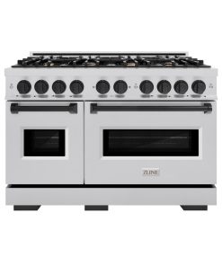 ZLINE Autograph Edition 48 in. 6.7 cu. ft. Classic Double Oven Dual Fuel Range with 8 Burner Gas Cooktop in DuraSnow Stainless Steel and Matte Black Accents (CDRSZ-48-MB)