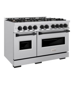 ZLINE Autograph Edition 48 in. 6.7 cu. ft. Classic Double Oven Dual Fuel Range with 8 Burner Gas Cooktop in Stainless Steel and Matte Black Accents (CDRZ-48-MB)