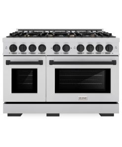 ZLINE Autograph Edition 48 in. 6.7 cu. ft. Select Double Oven Gas Range with 8 Burner Cooktop in Stainless Steel and Matte Black Accents (HGRZ-48-MB)