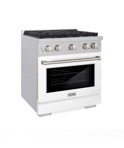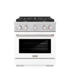 ZLINE 30 in. 4.2 cu. ft. Paramount Gas Range with 4 Burner Cooktop and Convection Gas Oven in DuraSnow Stainless Steel with White Matte Door (SGRS-WM-30)