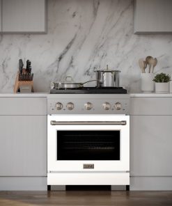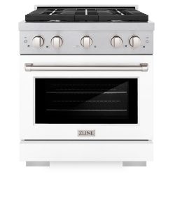 ZLINE 30 in. 4.2 cu. ft. Paramount Dual Fuel Range with 4 Burner Gas Cooktop and Electric Convection Oven in Stainless Steel with White Matte Door (SDR-WM-30)