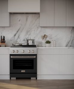 ZLINE 30 in. 4.2 cu. ft. Paramount Gas Range with 4 Burner Cooktop and Convection Gas Oven in DuraSnow Stainless Steel with Black Matte Door (SGRS-BLM-30)