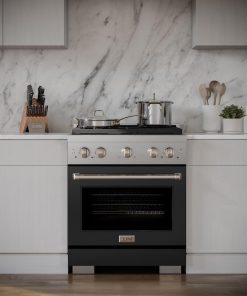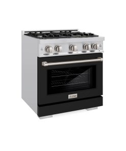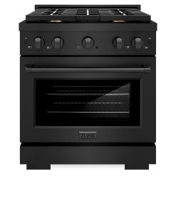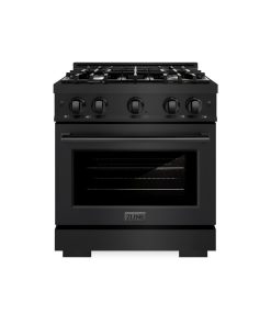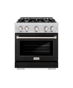 ZLINE 30 in. 4.2 cu. ft. Paramount Gas Range with 4 Burner Gas Cooktop and Convection Gas Oven in Stainless Steel with Black Matte Door (SGR-BLM-30)
