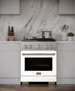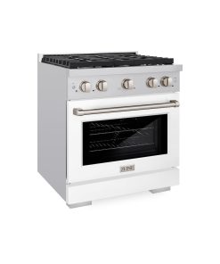 ZLINE 30 in. 4.2 cu. ft. Paramount Gas Range with 4 Burner Cooktop and Convection Gas Oven in Stainless Steel with White Matte Door (SGR-WM-30)