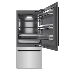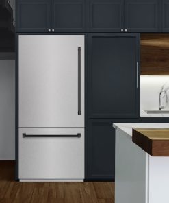 ZLINE Autograph Edition 36 in. 19.8 cu. ft. Built-In Bottom Freezer Refrigerator with Water Dispenser and Ice Maker in Stainless Steel with Matte Black Accents (RBITZ-304-36MB)