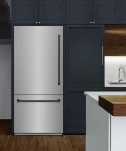 ZLINE Autograph Edition 36 in. 19.8 cu. ft. Built-In Bottom Freezer Refrigerator with Water Dispenser and Ice Maker in Stainless Steel with Graphite Gray Interior and Matte Black Accents (GRBITZ-304-36MB)