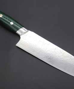 Mr. Itou R-2 Custom Damascus Santoku 180mm (7 inch, Green Color Stabilized Maple Burl Wood Handle, IT-226)