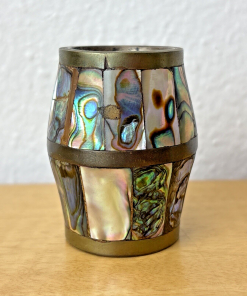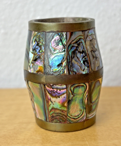 Abalone & Brass Shot Glass Barrel Shaped Made in Mexico