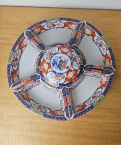 6 piece serving relish set LARGE 16″ Japan 5 side dishes, 1 center bowl with lid