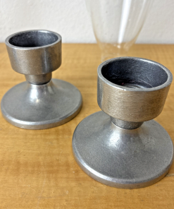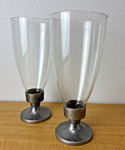 Vintage Pair of Pewter and Glass Candleholders / Candle Stick Holder