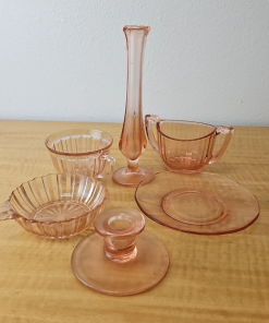 Vintage Pink Depression Glass lot- 6 pieces for your collection